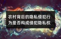 农村背后的隐私侵犯行为是否构成侵犯隐私权的问题。我国现行法律明确了侵犯隐私权的行为范畴,包括公开个人信息、非法侵入住宅等。宪法虽未明确规定隐私权的定义,但涉及隐私权的相关规定可以保护公民的权利。最新生效的《中华人民共和国民法典》进一步保护自然人的个人