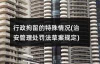 治安管理处罚法草案中关于行政拘留的特殊情况。草案规定,未成年人、七十岁以上老人、怀孕或哺乳不满一周岁婴儿的妇女以及精神病人等特殊人群在违反治安管理时,不适用行政拘留处罚。对于间歇性精神病人在精神正常时和盲人或又聋又哑的人违反治安管理的情况也有相应规定