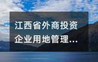 江西省外商投资企业用地管理办法。该办法旨在加强本省外商投资企业的用地管理,鼓励外商投资,并保护外商投资企业的合法权益。该办法规定了外商投资企业的定义、适用范围、土地管理部门职责、城市规划要求、预征和预留土地、农村集体土地使用、用地批准手续等内容。同时