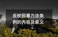 反校园暴力法条例的内容及其意义。条例包括积极有效预防学生欺凌和暴力,通过加强教育、专题教育、严格学校安全管理、强化学校周边综合治理来减少欺凌和暴力行为的发生。同时,依法依规处置学生欺凌和暴力事件,保护受害学生身心安全,对实施欺凌和暴力的学生依法采取适