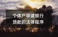个体户申请银行贷款的法律程序及所需法律文件和法律条件。个体户需提交贷款申请及资料,等待银行审批,签订贷款合同后银行发放贷款。贷款时,个体户需准备身份证明、资金流水账单、税务证明等文件,并满足本地户口、还款能力、工商营业执照等条件。另外,无抵押无担保企