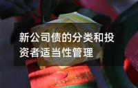 新公司债的分类和投资者适当性管理。新公司债分为大公募债券、小公募债券和非公开发行的公司债券三类。投资者分为合格投资者和公众投资者,根据其风险识别和承受能力进行分类。公众投资者只能投资满足债项评级AAA等条件的大公募债券,而合格投资者可投资范围更广。
