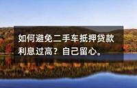 避免二手车抵押贷款利息过高的方法。文章介绍了二手车抵押贷款的流程,包括验车、评估、进押、放款、贷后管理等方面。要避免高利息,关键在于了解整个流程并与专业人士充分沟通,同时重视贷后管理和风险控制。通过遵守法律规定和合理操作,可以减少风险并保护自己的利益