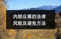 内部众筹的法律风险及避免方法。内部众筹存在信息披露不全面、风险控制机制不完善和关联企业调查等法律风险。避免法律风险的方法包括:对于债权类众筹要避免资金池、严格审查借款人身份真实性等;股权类众筹要限制发行对象数量和方式,严格核查融资方身份和项目真实性等