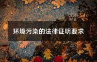 环境污染法律证明的要求。内容包括环境污染损害赔偿责任的要件、污染受害人的举证责任和环境污染加害人的举证责任。其中必须证明存在侵害行为、损害结果以及二者间的因果关系和行为人的过错。污染受害人需提供污染损害行为和自身遭受的损失等证据。加害人则需证明法律规