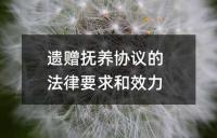 遗赠抚养协议的法律要求和效力。遗赠抚养协议是抚养人和受抚养人之间订立的关于抚养义务和遗赠财产权利关系的协议。其主体有限制,协议必须为书面形式,并可进行公证。办理公证时需注意抚养人的身份、当事人意思表示的真实性、遗赠财产的所有权等问题。
