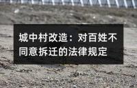 城中村改造过程中百姓不同意拆迁的法律规定。被征收人可以申请行政复议或提起行政诉讼,如既不执行也不复议,征收部门可向法院申请强制执行。文章还介绍了《国有土地上房屋征收与补偿条例》在城中村改造中的适用情况,包括征收土地属性变化、周围土地被征收和集体土地性