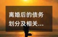 离婚后的债务划分及相关规定。根据《婚姻法》的规定,离婚后债务划分需视具体情况而定,包括共同债务和个人债务。共同债务需用共同财产清偿,不足或无法协商时可通过法院解决。个人债务由个人承担。若存在欺诈行为可申请变更或撤销财产分割协议。