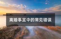 离婚事宜中的常见错误。包括向律师抱怨前任、强迫孩子做出选择、争夺不值得的财产、忽视自己的离婚案件、拒绝协商解决、恶意诋毁前任以及过快地投入下一段感情等错误做法。建议在离婚过程中要关注自己的利益,避免情绪化的决策,以合理的方式处理离婚问题。