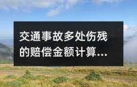 交通事故导致多处伤残的赔偿金额计算方法。根据公安部相关规定,多等级伤残的综合计算需要考虑伤残者的伤残赔偿总额、赔偿责任系数和赔偿指数等。残疾赔偿金的计算公式考虑了受诉法院所在地上一年度城镇居民人均可支配收入或农村居民人均纯收入标准、伤残系数和赔偿年限