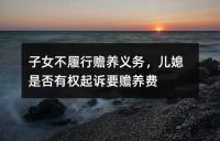 子女不履行赡养义务,儿媳是否有权起诉要赡养费当子女不履行赡养义务时,儿媳作为老人的委托人是否有权起诉要求赡养费的问题。根据法律规定,儿媳有权代理民事活动,包括起诉要求赡养费。赡养包括子女对父母的赡养和晚辈对长辈的赡养两种情况,无论子女是否婚生或有经济负担能力,都应履行赡养义务。这些法律规定旨在