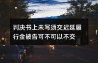 判决书上未写须交迟延履行金被告可不可以不交我国法律关于判决书上未明确写明需交付迟延履行金时,被告仍需履行缴纳义务的规定。迟延履行金具有司法强制性、救济性、补偿性及惩罚性。即使未造成实际损失,被执行人仍可能面临迟延履行金的支付要求。