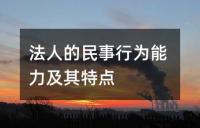 法人的民事行为能力及其特点法人的民事行为能力及其特点。法人的民事行为能力指其独立进行民事活动,取得权利并承担义务的资格,其特点在于与民事权利能力在时间和范围上保持一致,且通过代表机构实现。与自然人不同,法人的民事行为能力始终存在,属于完全民事行为能力,法定代表人的行为代表法人