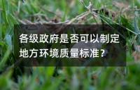 各级政府是否可以制定地方环境质量标准?各级政府是否可以制定地方环境质量标准的问题。国务院环境保护主管部门负责制定国家环境质量标准,而省、自治区、直辖市人民政府可以根据本地情况制定地方环境质量标准,包括国家环境质量标准中未作规定的项目和严于国家环境质量标准的地方标准。同时,地方环境质量标准