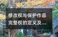 修改权与保护作品完整权的定义及关系我国《著作权法》中的修改权与保护作品完整权的定义及其关系。修改权指作者有权自行或授权他人修改作品,而保护作品完整权则是保护作品不受歪曲、篡改。关于两者关系,存在多种观点。修改权和保护作品完整权在性质、行为表现等方面存在区别。总的来说,两者都是著作权的