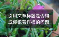引用文章标题是否构成侵犯著作权的问题关于引用文章标题是否构成侵犯著作权的问题。根据《著作权法》规定,适当引用他人已发表的作品,标明作者和作品名称,并不构成侵权。著作权侵权需满足存在侵犯事实、著作权法保护的排他性权利、被害人拥有著作权以及被告存在侵权行为等要件,且被告不得以“合理使用”为