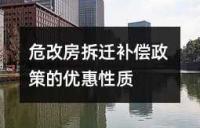 危改房拆迁补偿政策的优惠性质危改房拆迁补偿政策的优惠性质,包括居民可享受的优惠待遇如公房出售和经济适用住房政策。政策优惠体现在根据不同拆迁面积居民可享受不同价格购房和货币补偿上。危旧房改造因形式不同,适用的政策也不同,包括开发商主体危改、市政工程带危改和房改带危改等不同情况的补