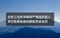 女职工在怀孕期间严重违反用人单位规章制度的解除劳动合同孕期女职工违反用人单位规章制度时的解除劳动合同问题。根据劳动合同法特殊职业保障机制,孕期女职工享有特殊保护,用人单位不能随意解除合同。但如果女职工严重违反劳动纪律,单位可单方面解除劳动关系,前提是用人单位依法制定并公示了相关规章制度。