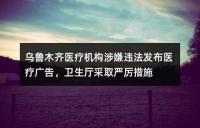 乌鲁木齐医疗机构涉嫌违法发布医疗广告,卫生厅采取严厉措施乌鲁木齐多家医疗机构涉嫌违法发布医疗广告的问题。卫生厅采取严厉措施,撤销了涉事医疗机构的广告审查证明,并吊销部分诊疗科目或暂停执业活动。这是为了加强医疗广告管理,保障人民群众的身体健康和权益。